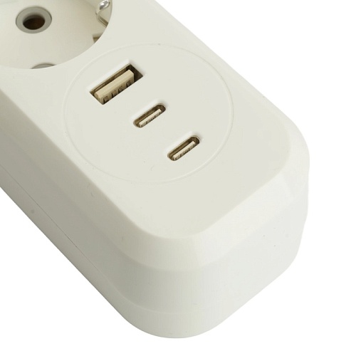 Удлинитель 4-местный с/з с выключ. STEKKER HM071-41-03 3x1мм2, 3м, 250В, 16А, 1USB+2C, 2.4A, сер Home, белый