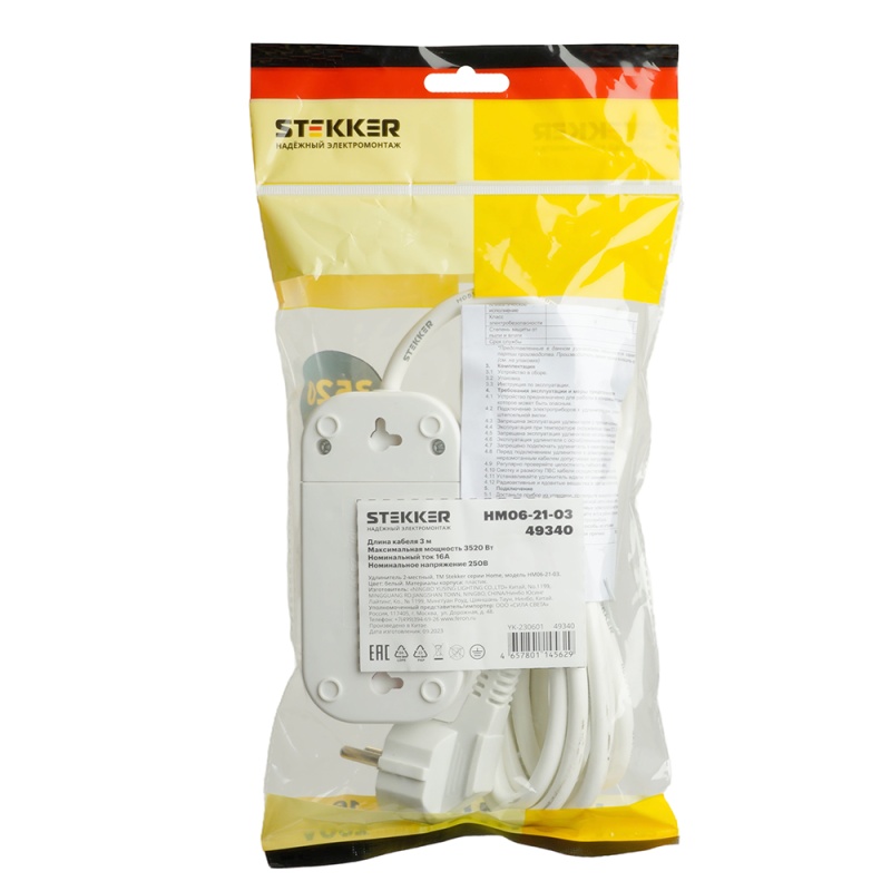 Отзывы о Удлинитель двухместный с/з STEKKER HM06-21-03 3x1мм2, 3м, серия Home (У10-001), белый