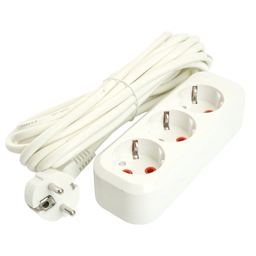 Удлинитель трехместный с/з STEKKER HM06-31-05 3x1мм2, 5м, серия Home (У10-002), белый