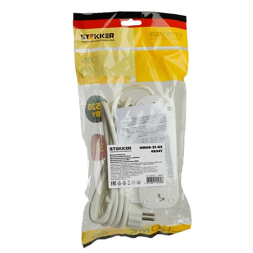 Удлинитель четырехместный с/з STEKKER HM06-40-03 3x1мм2, 3м, серия Home (У10-429), белый 49351