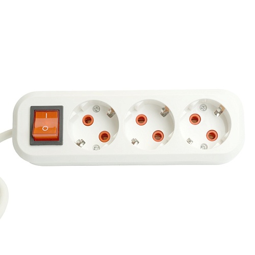 Удлинитель трехместный с/з с выключ. STEKKER HM07-31-02 3x1мм2, 2м, серия Home (У16А-002), белый