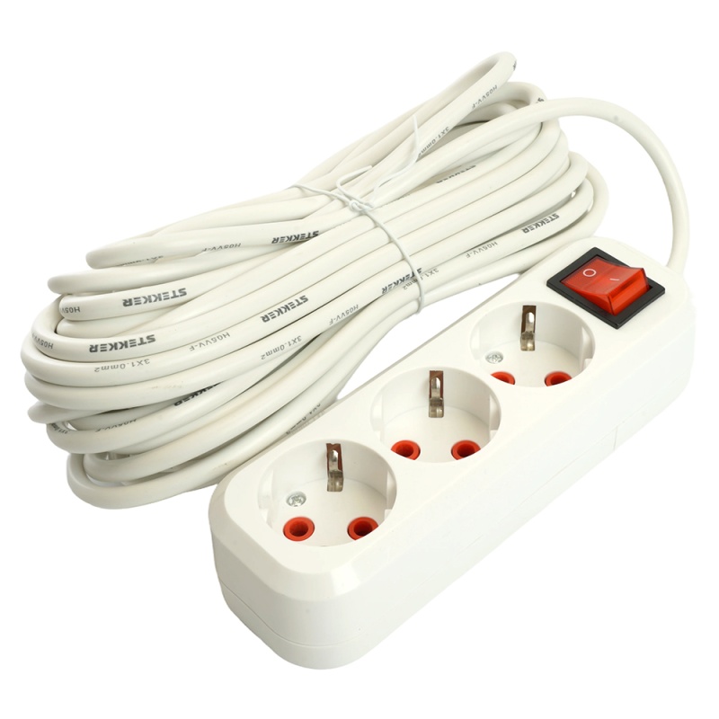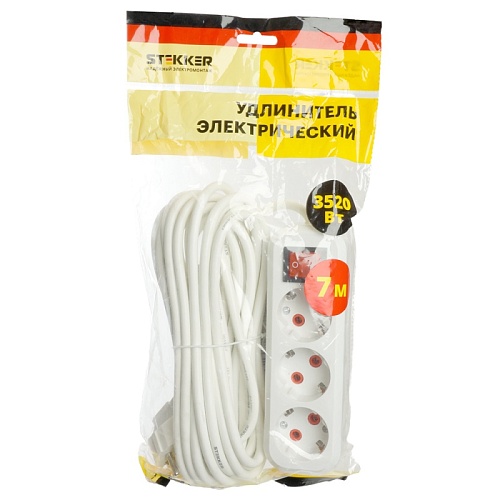 Отзывы о Удлинитель трехместный с/з с выключ. STEKKER HM07-31-07 3x1мм2, 7м, серия Home (У16А-002), белый