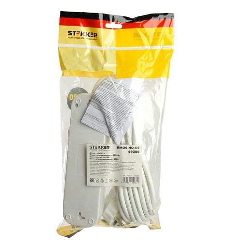 Удлинитель четырехместный c/з STEKKER HM06-40-07 3x1мм2, 7м, серия Home (У10-429), белый 49389