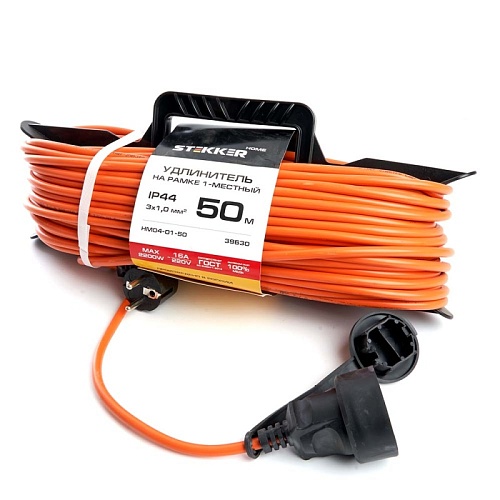 Отзывы о Удлинитель-шнур на рамке 1-местный с/з Stekker, HM04-01-50 (US1), 3*1,0мм2, 50м, 220В, 16А, Home, оранжевый (UG)