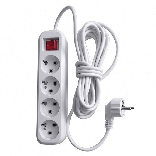 Удлинитель четырехместный с/з с выключателем STEKKER HM03-41-07 3x0,75, 7м, серия Home (У10А-003), белый 39526