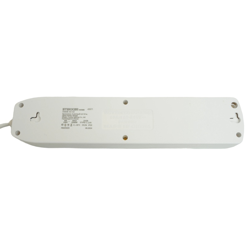 Удлинитель 4-местный c/з 3x1 мм2, 1,8 м, 250В, 10А, 2USB+1Type-C 2,4А, серия Home plus, белый STEKKER HM08-43-02