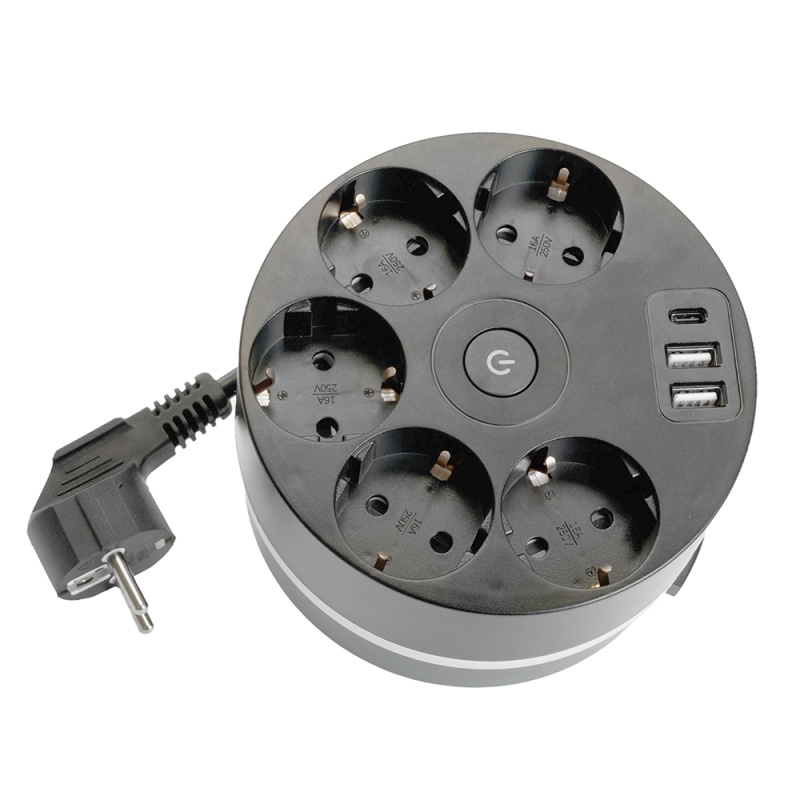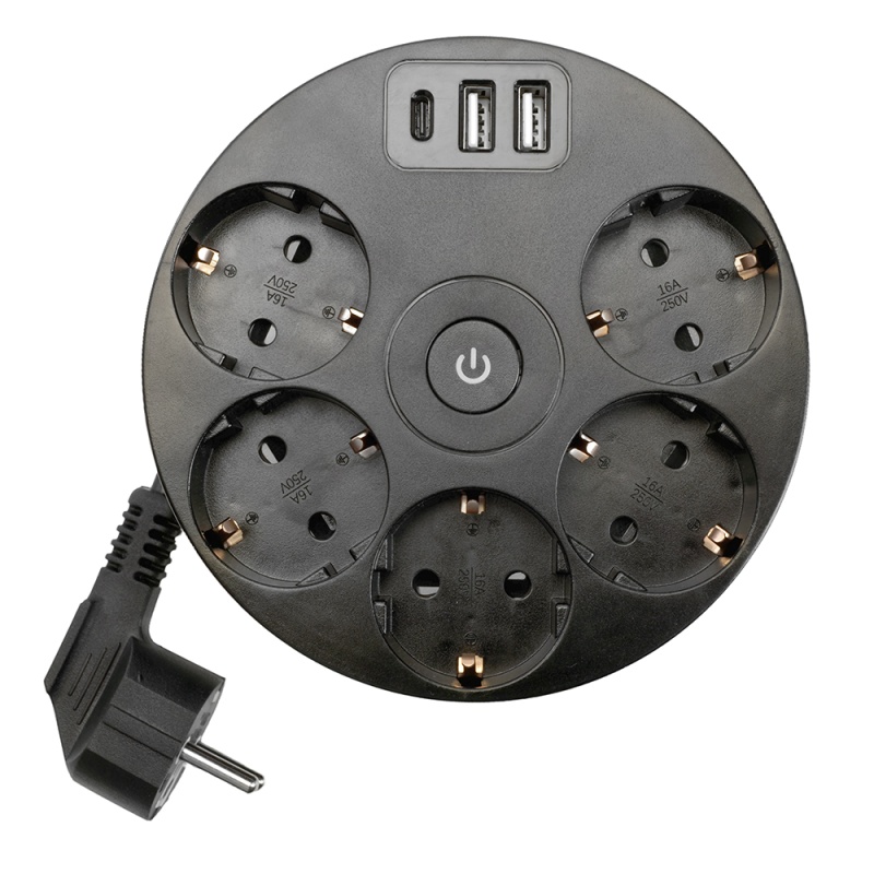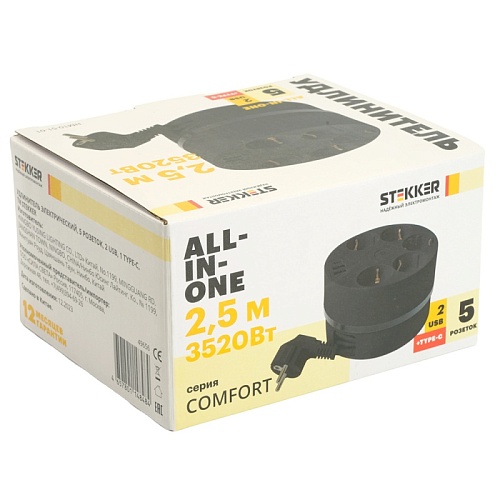 Отзывы о HM10-51-01 Удлинитель 5-местный с/з, 3x1мм2, 2.5м, 250В, 16А, 2USB+С 5V 3,1А, серия Comfort, черный