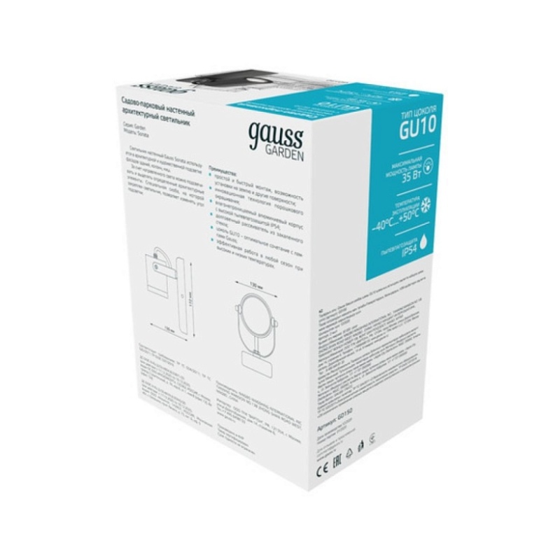 Характеристики Уличный настенный светильник GAUSS GD150_GAUSS