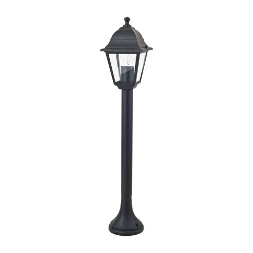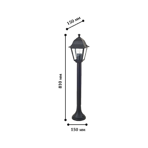 Каркас из металла черного цвета, плафон из прозрачного стекла, сменная лампа, цоколь E27.