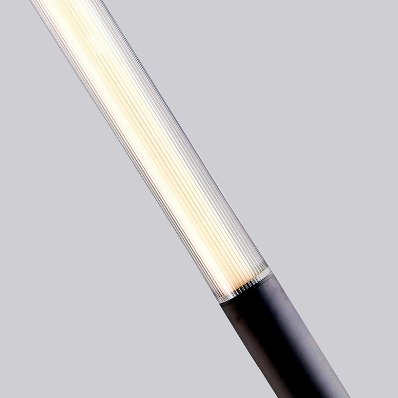 Каркас из метала черного цвета, внешний плафон из прозрачного акрила, внутренний плафон из белого рифленого акрила, LED-модуль.
