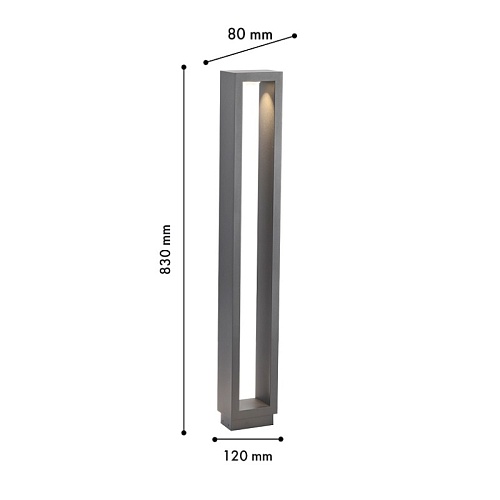Уличный столб с серым прямоугольным каркасом, в верхней части LED-модуль, рассеиватель из прозрачного акрила, IP65.
