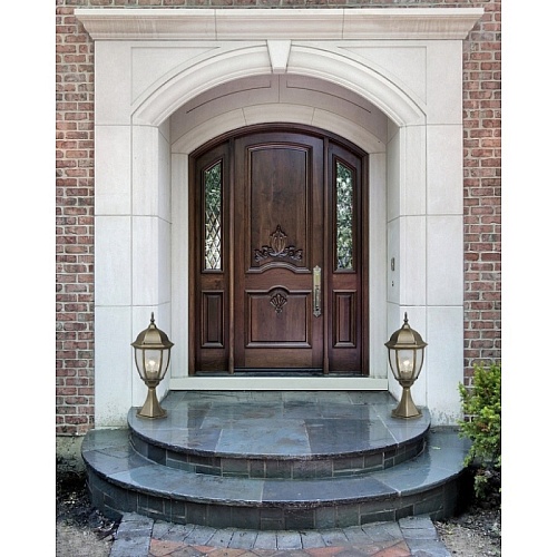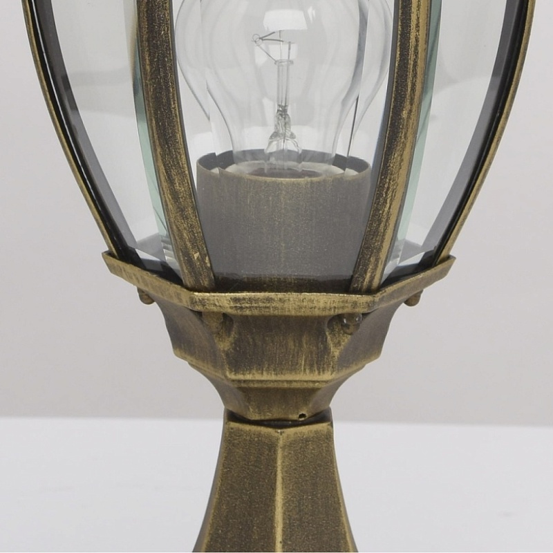 Корпус светильника выполнен из сплава алюминия с цинком и окрашен по технологии порошкового окрашивания в черный цвет с патинированием в цвет старинной позолоты. Плафон составляют одинакового размера пластины стекла, изогнутые по форме.