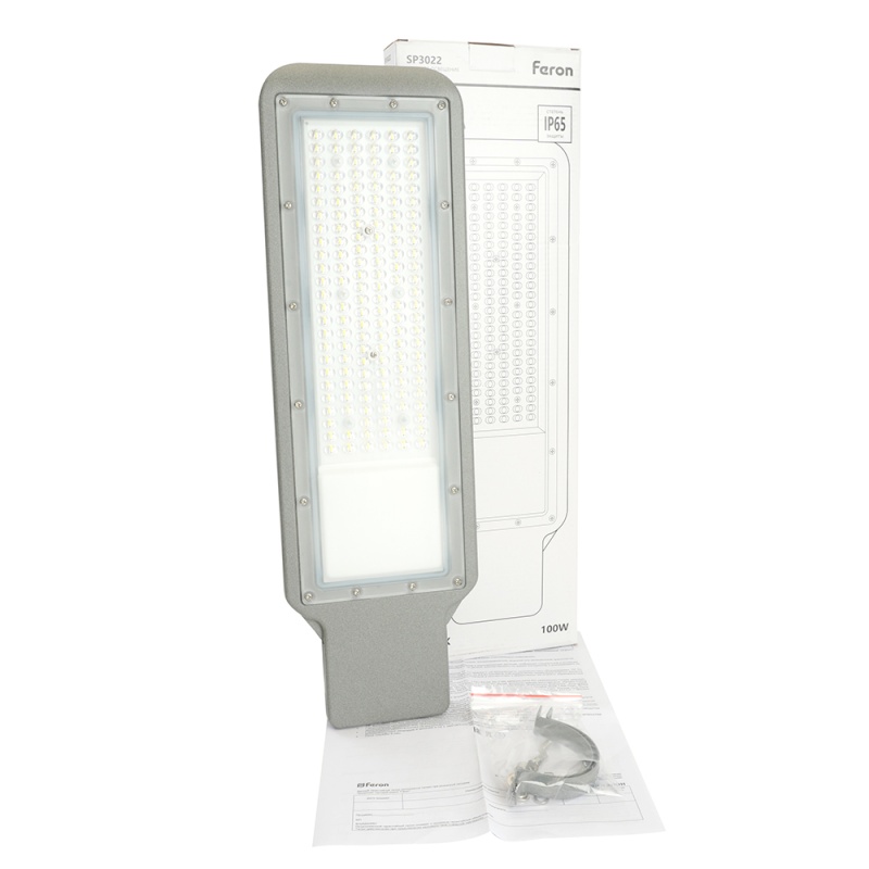 Светодиодный уличный консольный светильник Feron SP3022 100W 5000K 230V, серый 48965