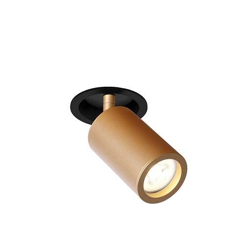 врезной светильник с углубленной базой, поворотный плафон, сочетание золотого и черного цветов каркаса