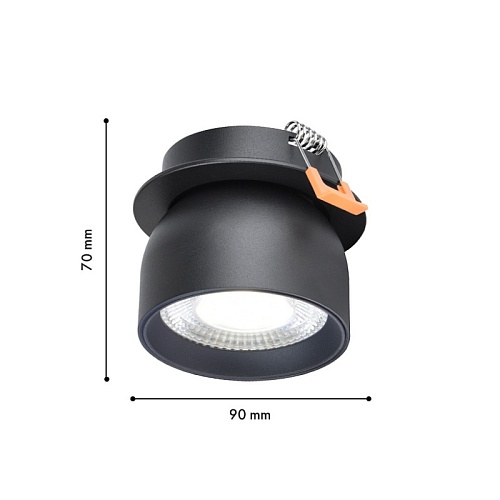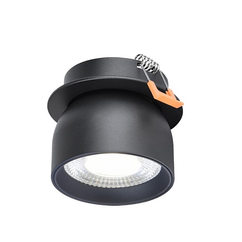 Каркас полусферической формы черного матового цвета, поворотный плафон со встроенным модулем LED, смещен вглубь плафона для создания более направленного потока света.