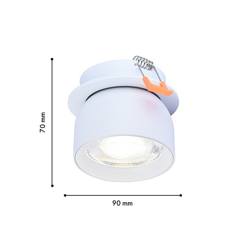 Каркас полусферической формы белого матового цвета, поворотный плафон со встроенным модулем LED, смещен вглубь плафона для создания более направленного потока света.