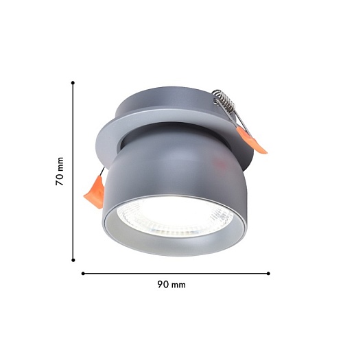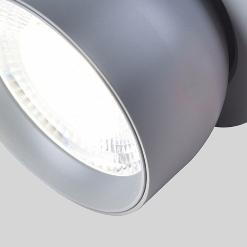 Каркас полусферической формы серого матового цвета, поворотный плафон со встроенным модулем LED, смещен вглубь плафона для создания более направленного потока света.