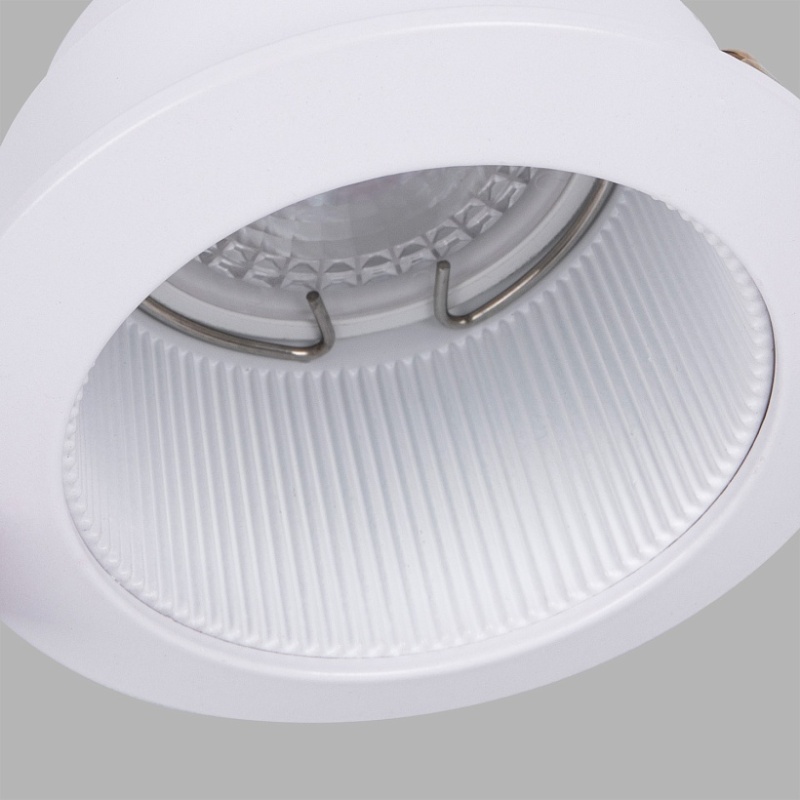 Металлический каркас белого цвета, цоколь GU10, защита IP20.