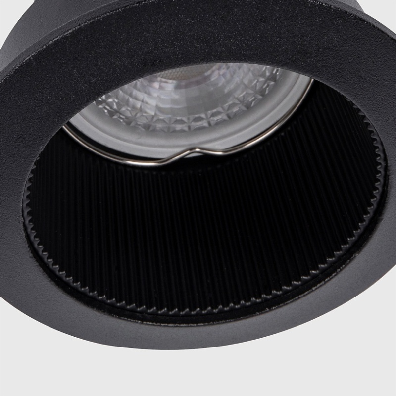 Металлический каркас черного цвета, цоколь GU10, защита IP20.