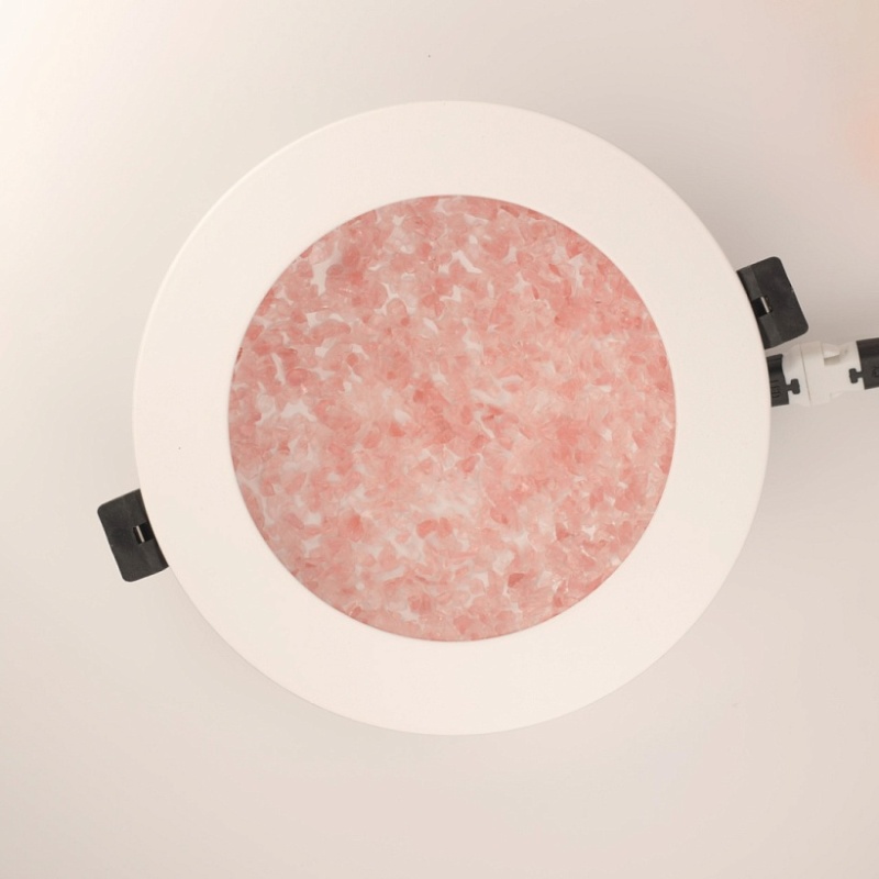 Основание светильника выполнено из сплава алюминия и окрашено в белый цвет.Светодиодные источники света типа SMD Strip закрыты прозрачным стеклом. Цветная стеклянная крошка.