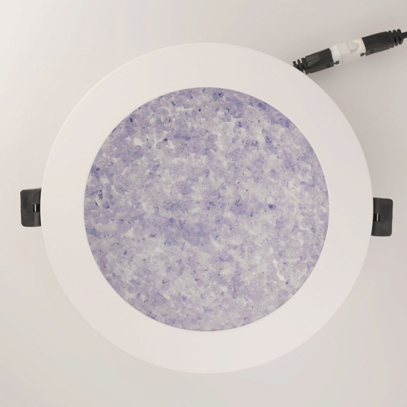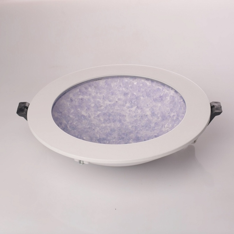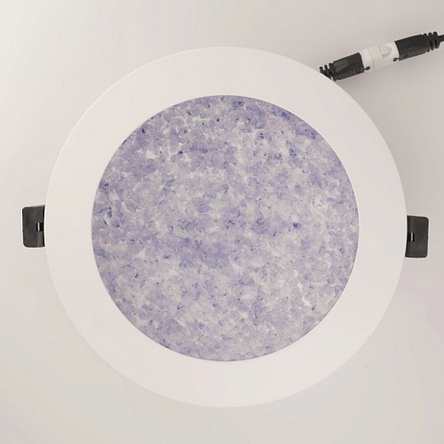 Основание светильника выполнено из сплава алюминия и окрашено в белый цвет.Светодиодные источники света типа SMD Strip закрыты прозрачным стеклом. Цветная стеклянная крошка.