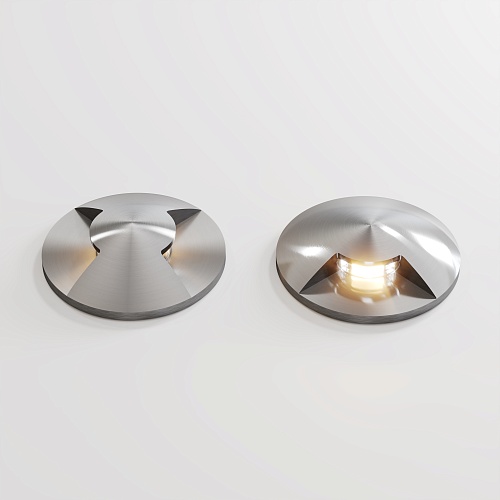 Металлический корпус из нержавеющей стали. Цвет - серебристый. Три дизайна корпуса - три варианта свечения. Высокая степень защиты IP67 позволяет использовать во влажных зонах. Подходят для маркерной подсветки дорожек и лестниц.
