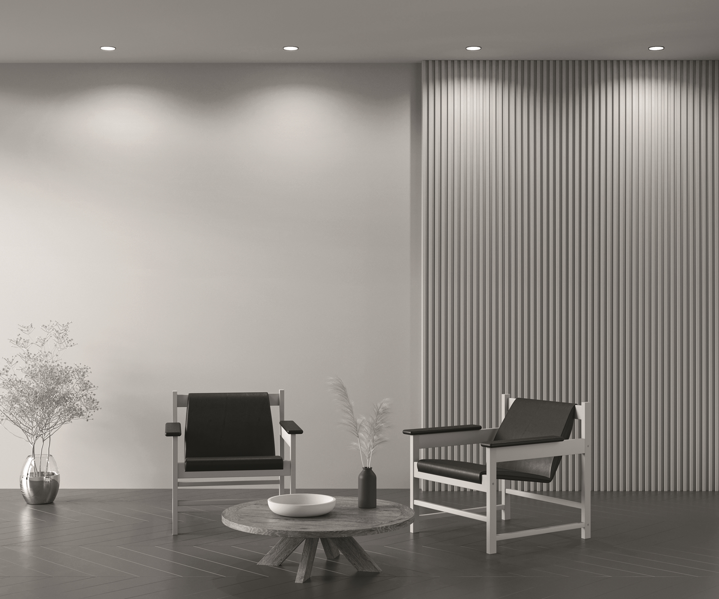 Глубоко утопленная от края лампа обеспечивает визуальный комфорт для наблюдателя. Конструкция предусматривает регулировку направления светового потока в одной плоскости с отклонением от оси на 30° Светильники сделаны из литого алюминия. При окрашивании используется стойкая к царапинам порошковая краска. Модели серии представлены в двух формах, черном и белом цвете. В качестве источника света рекомендуется использовать лампы Voltega (art. 7060/7061) мощностью 7W и углом рассеивания 38°. Диммируемые версии ламп — art. 7108/7109.