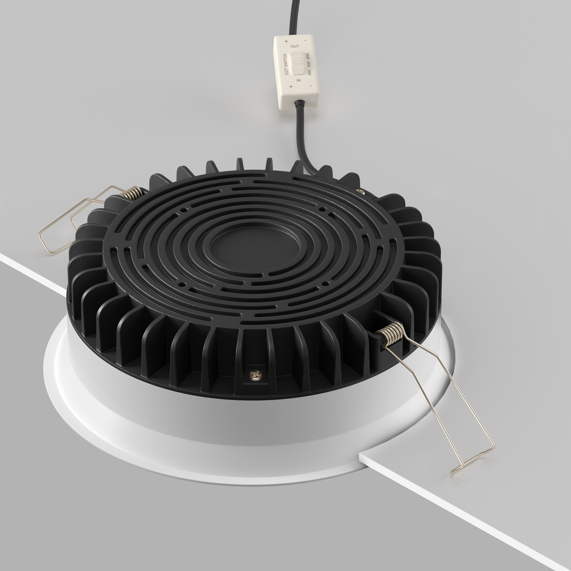 Материал арматуры - алюминий и пластик. Организация основного освещения в интерьере. Высокий коэффициент цветопередачи >90. Качественное отображение цветов. Утопленный матовый рассеиватель. Переключатель цветовой температуры. Повышенная степень пылевлагозащиты IP 44.