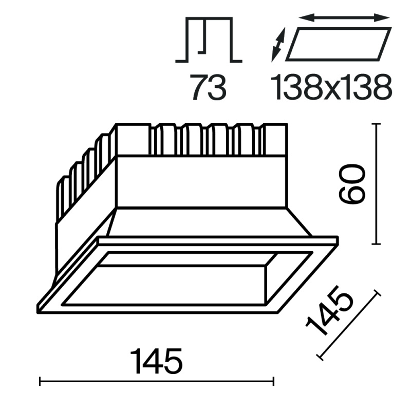 Характеристики Встраиваемый светильник Technical Okno DL056-18W3-4-6K-W