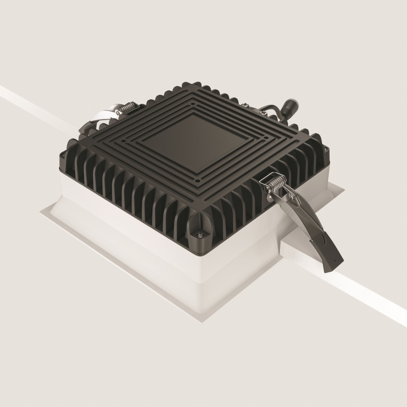 Материал арматуры - алюминий и пластик. Организация основного освещения в интерьере. Высокий коэффициент цветопередачи >90. Качественное отображение цветов. Утопленный матовый рассеиватель. Переключатель цветовой температуры. Повышенная степень пылевлагозащиты IP 44.