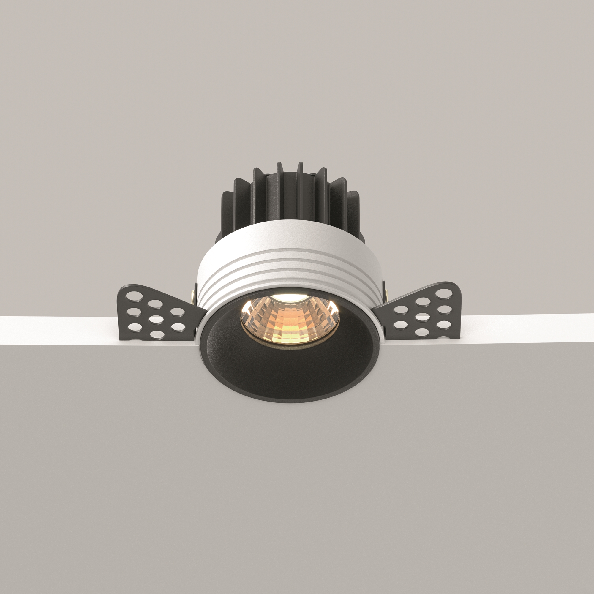 Материал корпуса – металл; цвет – белый, чёрный и латунь. Два варианта корпуса: встраиваемые светильники с узкой рамкой и встраиваемые светильники без видимой рамки, предназначенные для безрамочного монтажа под шпаклёвку. Широкий угол рассеивания 60°. Утопленный LED-источник света мощностью 7 или 12Вт. Высокий коэффициент цветопередачи. Цветовая температура 3000К или 4000К. Наличие биодинамических моделей и дополнительных антибликовых фильтров.