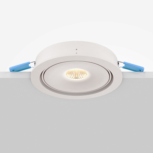 Металлический корпус в двух вариантах: встраиваемый и встраиваемый под шпаклёвку. Цвета: чёрный и белый. Поворотный механизм. LED-источник цвета с переключателем цветовой температуры (ССТ). Цветовая температура – 3000К, 4000К или 6000К. Высокий показатель цветопередачи - CRI>90. Совместимость с драйверами DALI.