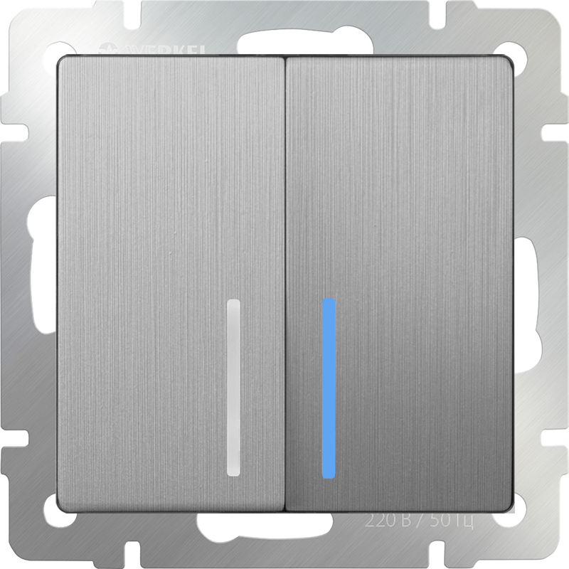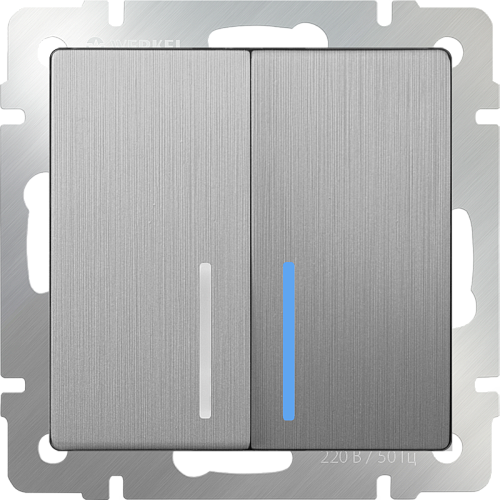 Отзывы о Выключатель двухклавишный проходной с подсветкой cеребряный рифленый WL09-SW-2G-2W-LED