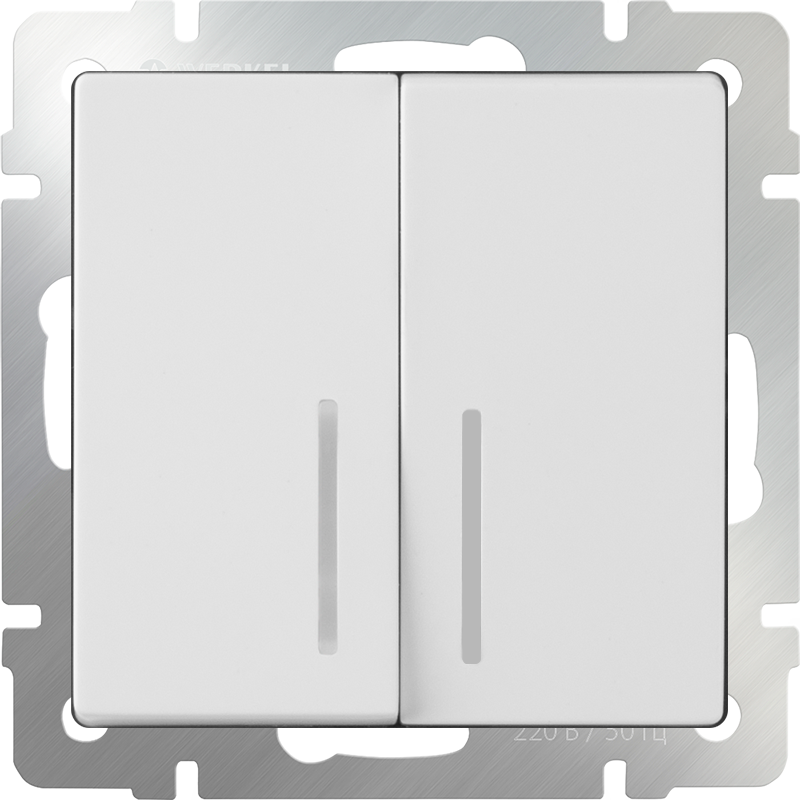 Выключатель двухклавишный с подсветкой белый WL01-SW-2G-LED