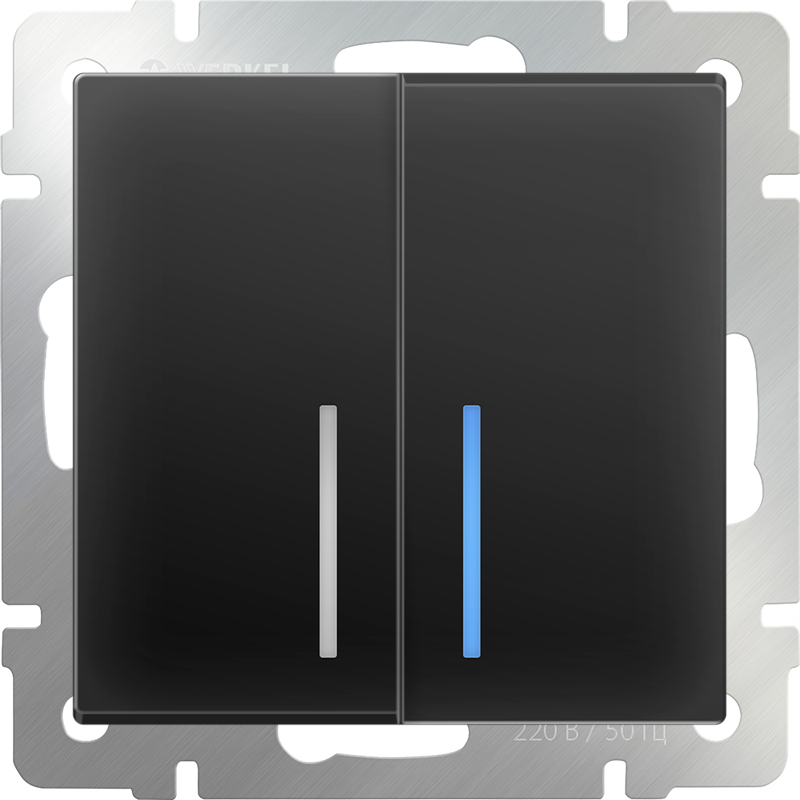 Характеристики Выключатель двухклавишный с подсветкой черный матовый WL08-SW-2G-LED