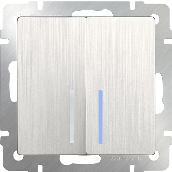 Характеристики Выключатель двухклавишный с подсветкой перламутровый рифленый WL13-SW-2G-LED