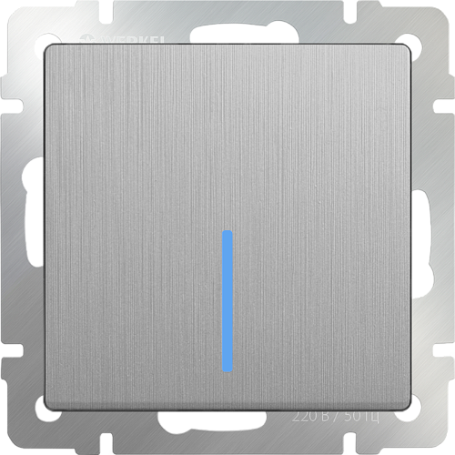 Отзывы о Выключатель одноклавишный проходной с подсветкой cеребряный рифленый WL09-SW-1G-2W-LED
