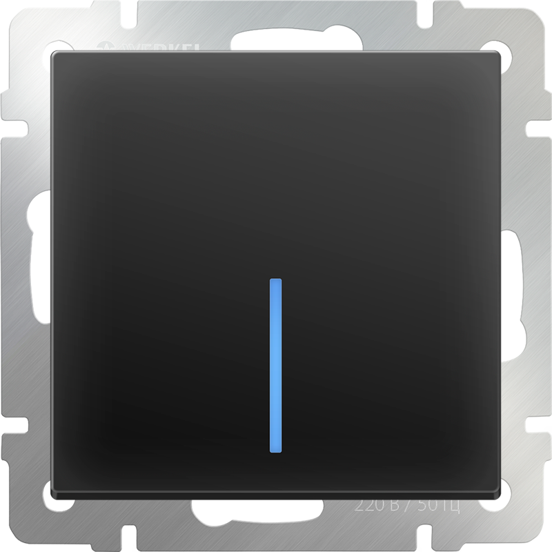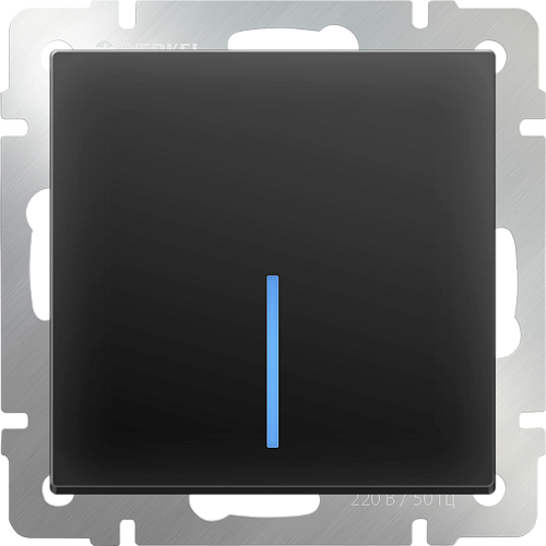 Выключатель одноклавишный проходной с подсветкой черный матовый WL08-SW-1G-2W-LED