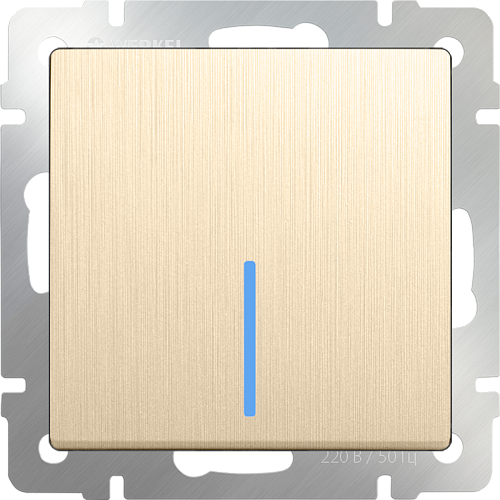 Выключатель одноклавишный проходной с подсветкой шампань рифленый WL10-SW-1G-2W-LED