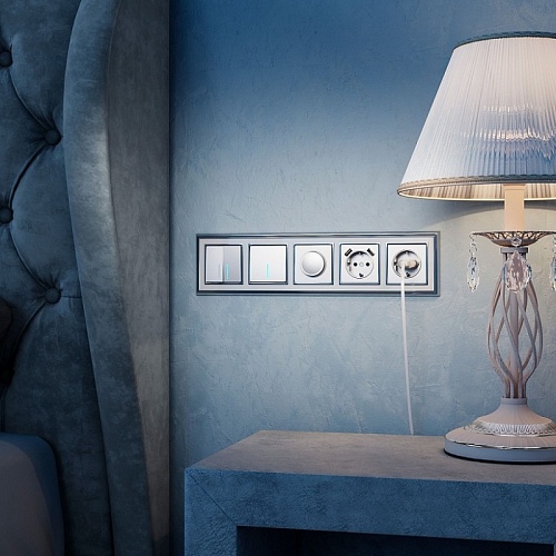Характеристики Выключатель одноклавишный с подсветкой (серебряный) W1110106