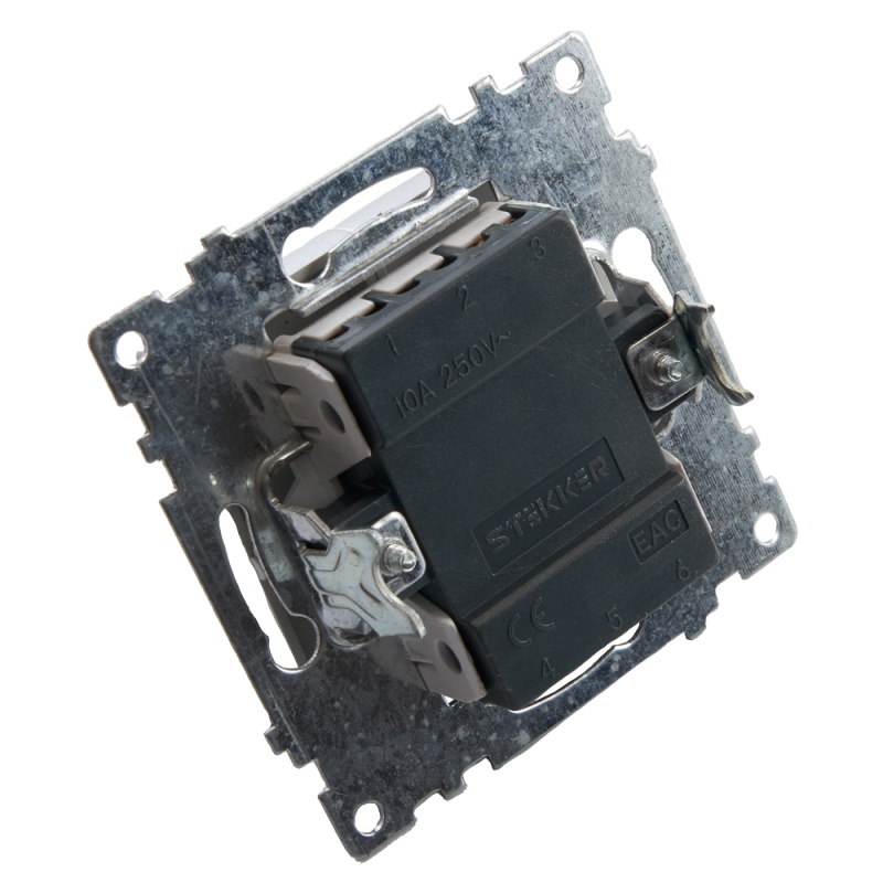 Характеристики Выключатель 1-клавишный c индикатором (механизм) STEKKER GLS10-7101-02, 250В, 10А, серия Катрин, шампань