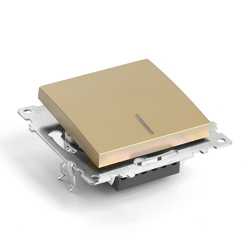 Выключатель 1-клавишный c индикатором (механизм), STEKKER, GLS10-7101-08, 250В, 10А, серия Катрин, золото