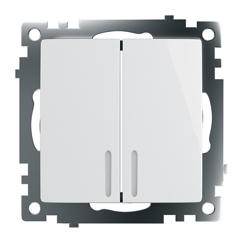 Выключатель 2-клавишный c индикатором (механизм), STEKKER GLS10-7102-01, 250В, 10А, серия Катрин, белый