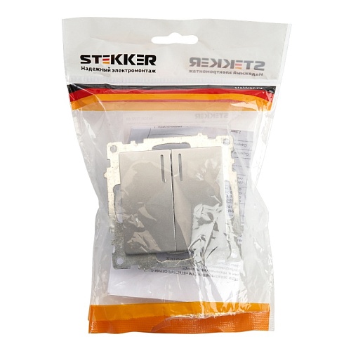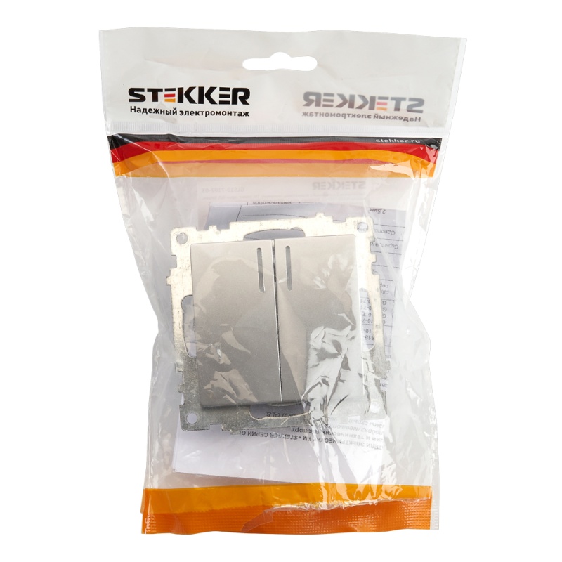 Отзывы о Выключатель 2-клавишный c индикатором (механизм), STEKKER GLS10-7102-03, 250В, 10А, серия Катрин, серебро