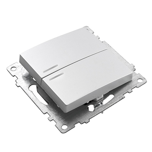Выключатель 2-клавишный c индикатором (механизм), STEKKER GLS10-7102-03, 250В, 10А, серия Катрин, серебро