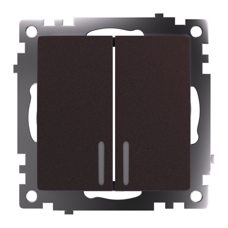 Выключатель 2-клавишный c индикатором (механизм), STEKKER GLS10-7102-04, 250В, 10А, серия Катрин, шоколад