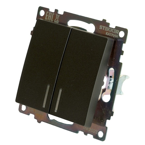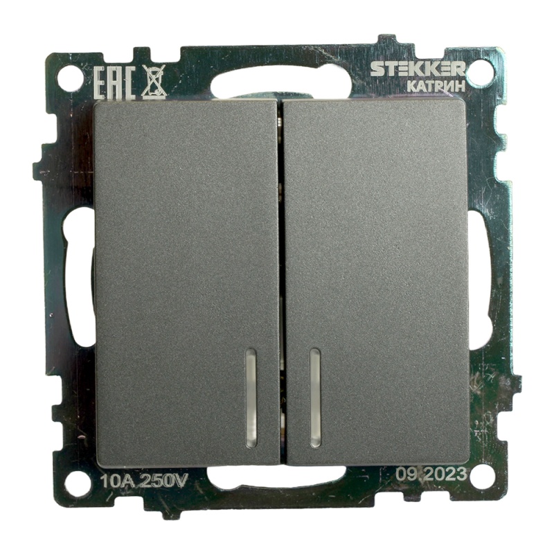 Отзывы о Выключатель 2-клавишный c индикатором (механизм) 250В, 10А, серия Катрин, графит, GLS10-7102-06