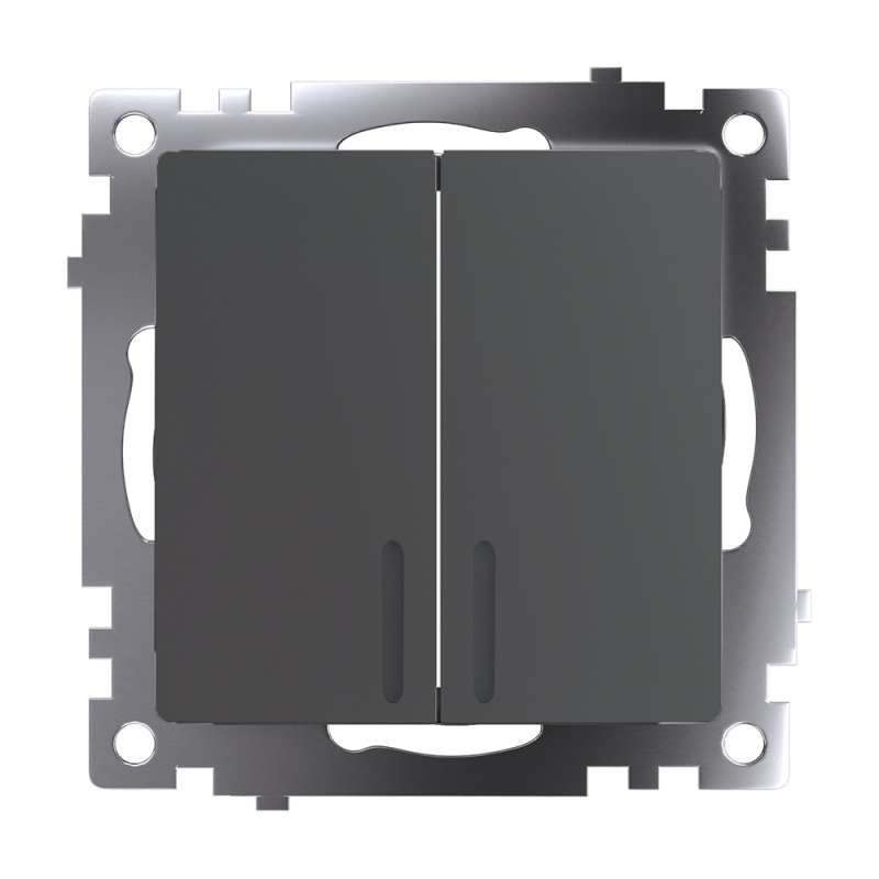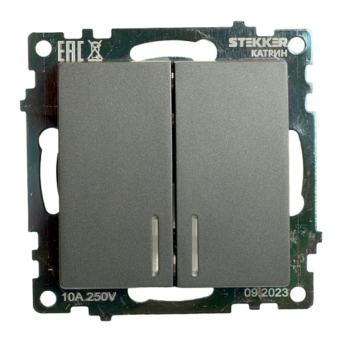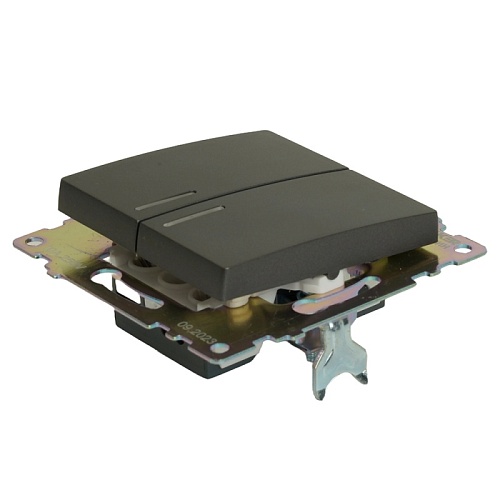 Выключатель 2-клавишный c индикатором (механизм) 250В, 10А, серия Катрин, графит, GLS10-7102-06