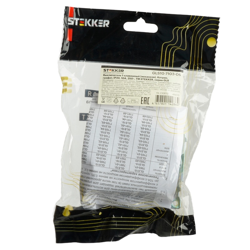 Характеристики Выключатель 1-клавишный (механизм) 250В, 10А, серия Катрин, графит, GLS10-7103-06