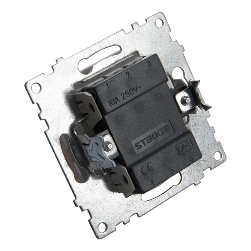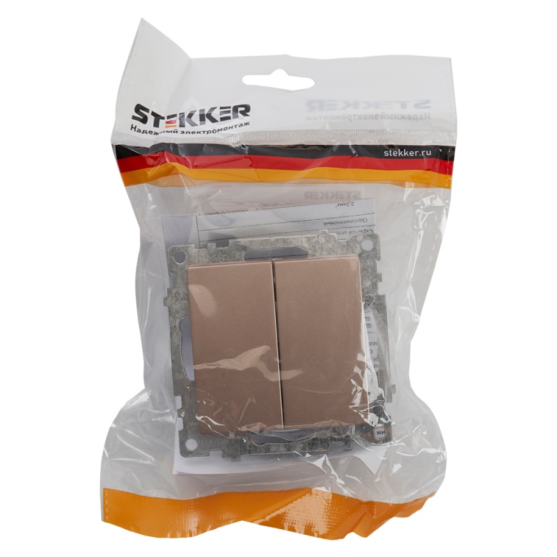Отзывы о Выключатель 2-клавишный (механизм), STEKKER GLS10-7104-02, 250V, 10А, серия Катрин, шампань
